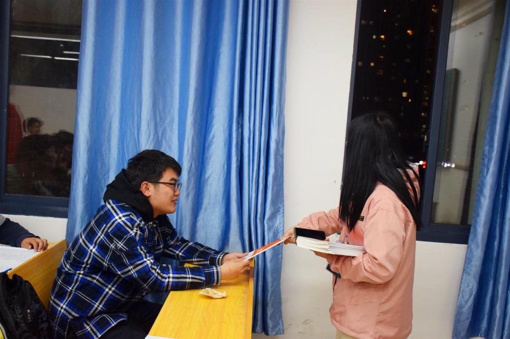 (土木院通讯员 黄湘粤) 为了帮助76net必赢线路检测中心大一学子更好地准备四级考试,76net必赢线路检测中心团委、学生会学习部携手“一笑而过”于4月14日晚在大一各班开展了“四级先锋班”免费课程的宣讲活动。在本次宣讲活动中,76net必赢线路检测中心团委、学生会学习部准备了180份课程配套讲义,以帮助同学们更好地了解“四级先锋班”免费课程。