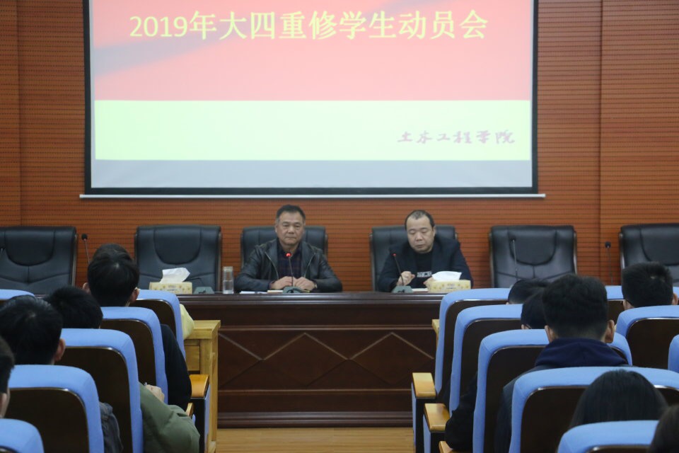 会议伊始,王书记简单讲述了大会流程。随后,贺书记介绍了2019届重修学生的相关情况,强调本届重修学生比例大,挂科数目多,并分析了同学们挂科的原因。接着,贺书记又介绍了重修的相关安排以及对重修考试作的重大调整,鼓励学生们重视重修考试,积极复习迎考。同时,贺书记还提到,对于挂科率过高的同学,老师会与其家长取得联系以督促学生努力学习。最后,王书记对本次大会进行了总结发言。王书记提出同学们要努力克服困难,要充满信心面对重修,同学们有任何的问题都可以与老师们取得联系,让老师针对存在的问题提出有建设性的方案。至此,本次大会圆满结束。