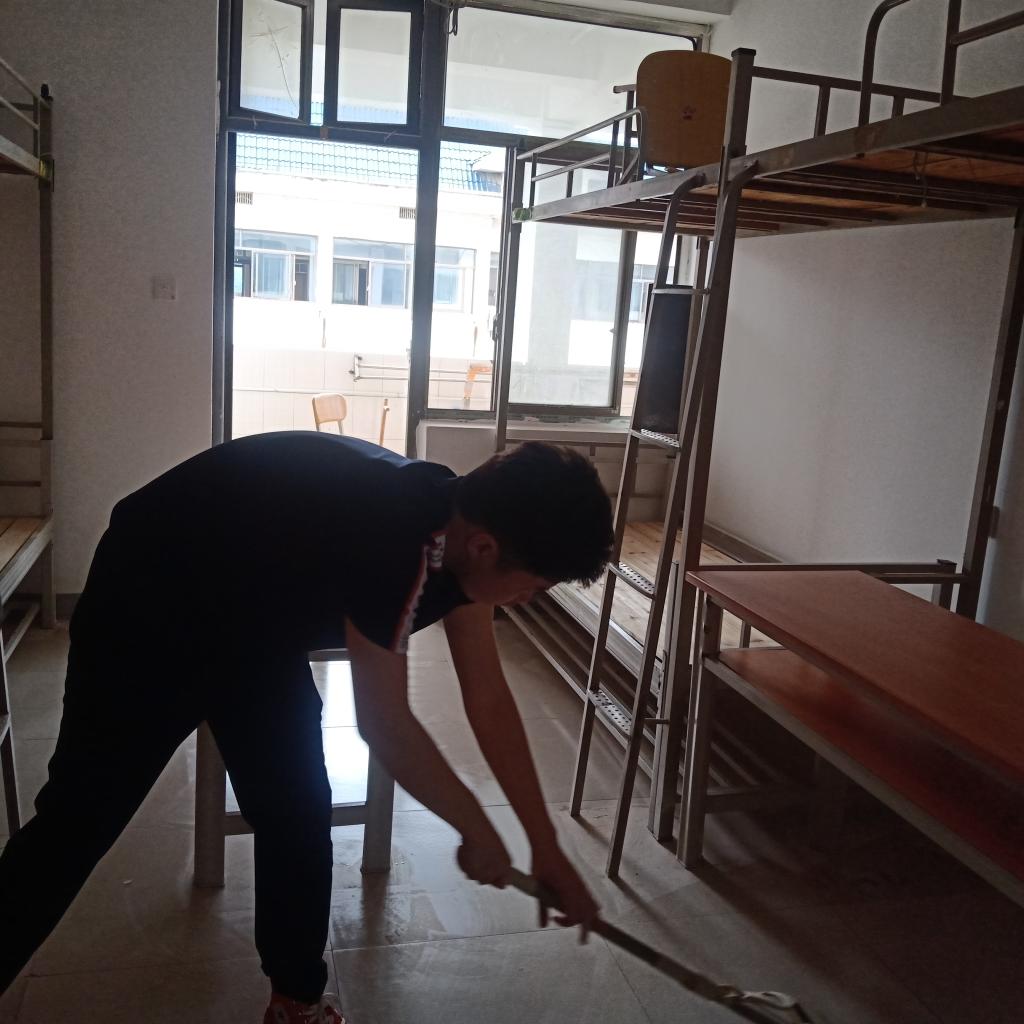 8月31日,土木院的学生干部被分配成几个小组,小组成员们拿着扫把、抹布分别前往各自负责的新生寝室进行打扫。从打扫卫生间到擦洗墙壁,同学们不放过任何死角,仔细认真地将垃圾清除干净。遇到很难清理的污垢,同学们耐心地一点一点铲除,充分发挥了不怕累、不怕脏、不怕苦的奉献精神。经过同学们的辛勤劳动,寝室的环境变得干净整洁,面貌焕然一新。同学们将寝室打扫干净后,仔细查看了寝室家具、水管及寝室通电情况,将寝室出现的问题及时上报给相关部门,并将寝室人员信息表贴在宿舍门口,从而让新生了解信息方便入住。