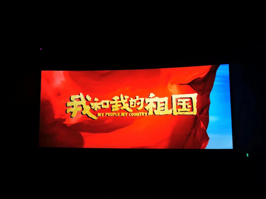 进入电影院入座后,同学们怀着激动的心情等待着电影的开始。电影《我和我的祖国》取材新中国成立70周年以来,祖国经历的7个历史性经典瞬间,讲述了普通人与国家之间息息相关、密不可分的7个动人故事——《前夜》、《相遇》、《夺冠》、《回归》、《北京你好》、《护航》、《白昼流星》,一个故事讲述着一段历史,一个故事书写着一段芳华。电影中的种种画面引发了同学们的时代记忆,调动了同学们的情绪,触动人心,引起内心的共鸣。