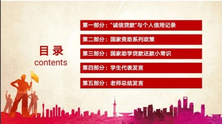 会议伊始,主持人带领同学们学习了《致全省国家助学贷款毕业生的公开信》,信中表达了对毕业生践诺守信的希冀。随后,主持人播放了如何进行贷款的短视频,视频中介绍了正常还款、提前还款、逾期还款三种方式以及具体流程。紧接着,主持人详细介绍了国家资助系列政策,并由办公室干事崔晓然向同学们介绍国家助学贷款的小常识。76net必赢线路检测中心18届学生会主席李志冬作为助学贷款毕业生代表发言,号召同学们养成诚实守信的优良品质,积极进取,同时表达了对国家助学贷款的感恩之心。