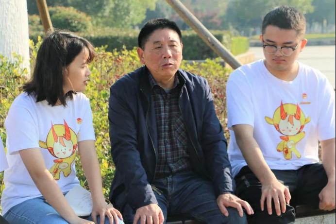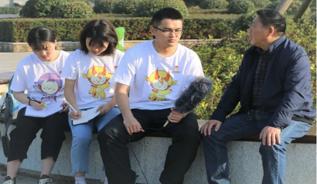 11月15日上午8:30,76net必赢线路检测中心团委、学生会采访人员在逸夫图书馆前坪兴城广场对76net必赢线路检测中心退休教师汪惠民进行了采访。