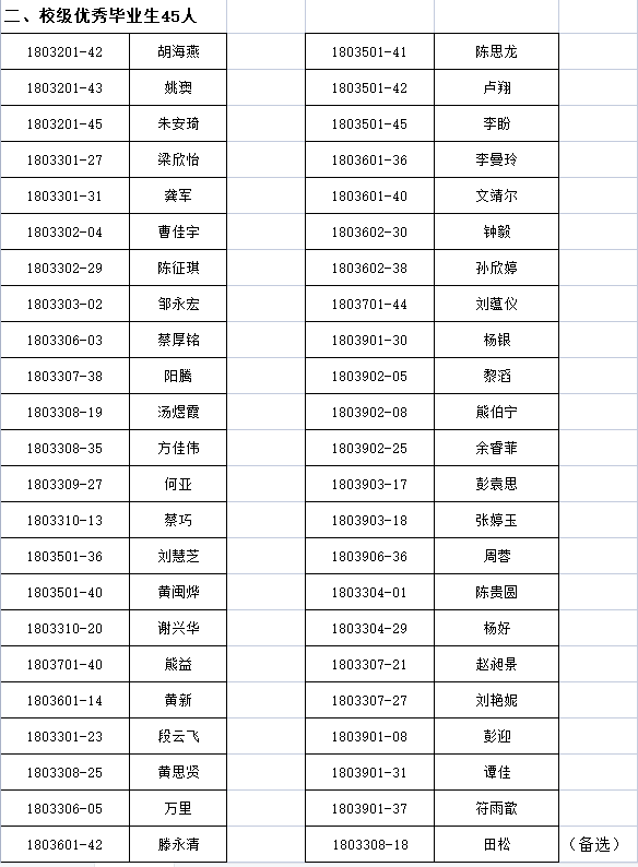 根据《关于评选2022届湖南省普通高等学校优秀毕业生和创新创业优秀毕业生的通知》(湘教通〔2021〕348号)文件精神,经本人申请,班级推荐,76net必赢线路检测中心党政联席会议讨论通过,胡海燕等45名同学推报为2022届优秀毕业生,现将推报名单公示如下: