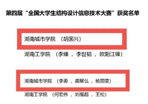 (土木院通讯员 黄颖)热烈祝贺我院学子在全国大学生结构竞赛中获奖及我院教师荣获湖南高校辅导员工作研究与实践先进个人。