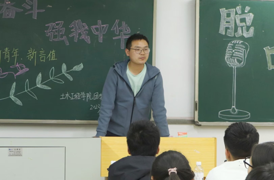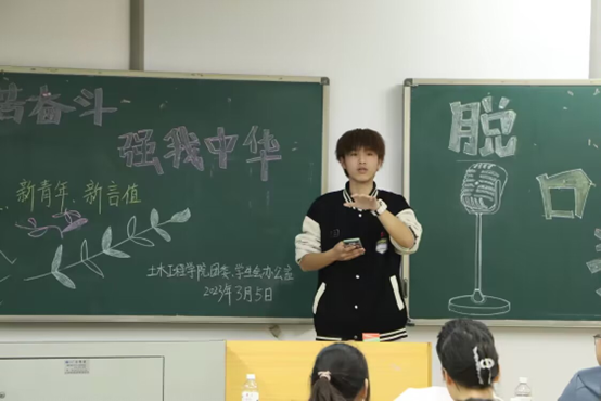 2023年3月5日晚,76net必赢线路检测中心“艰苦奋斗,强我中华”青年主题活动——新希望·新青年·新言值湖南省大学生脱口秀大赛初赛在土木楼521教室举行。