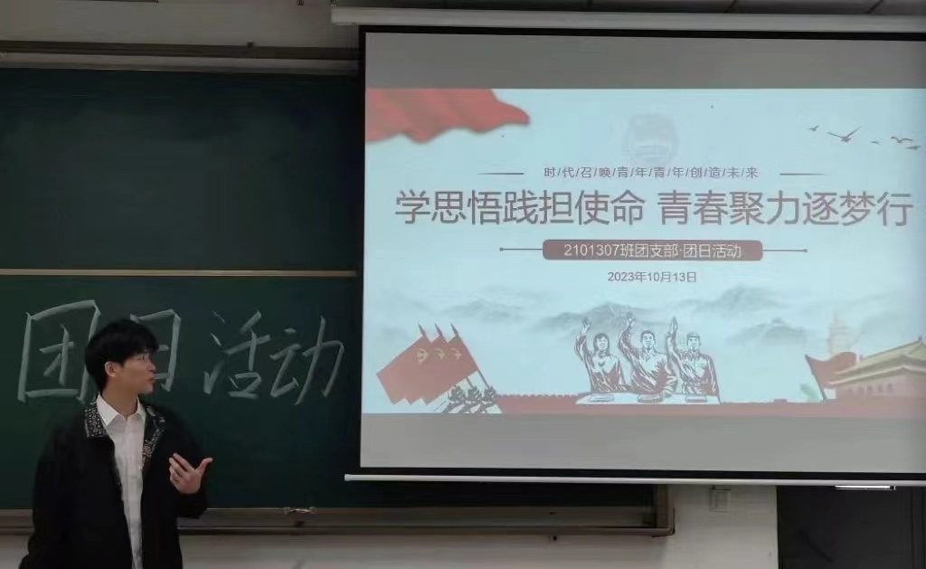 为深入学习贯彻习近平新时代中国特色社会主义思想和党的二十大精神,充分激发广大青年坚定理想信念,勇担时代使命。为此,76net必赢线路检测中心2203202 班团支部于10月13日开展了“学思悟践担使命,青春聚力逐梦行”主题团日活动,紧跟党迈上新的百年青春征程。本次活动主持人为2203202班团支书,2203202班全体同学参与了本次活动。