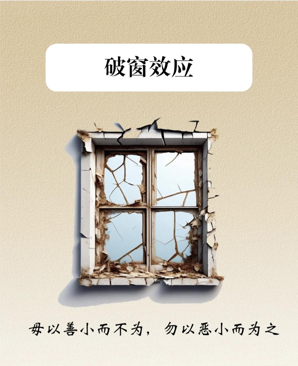 总之,破窗效应是一种危害甚大的社会现象,对人们的生活和工作产生了诸多负面影响。要想消除破窗效应,关键在于强化管理、提高人们的自律意识、营造良好的环境以及强化宣传教育。只有这样,才能有效地预防和减少不良行为的发生,促进社会的和谐稳定。