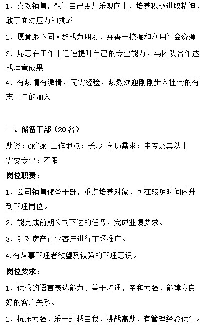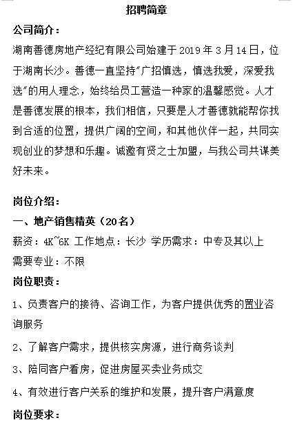 【就业信息】湖南善德房地产经济有限公司招聘简章