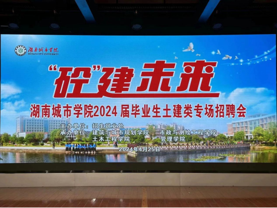 为积极响应党中央“稳就业”“保就业”决策部署,搭建毕业生与用人单位双向沟通的平台,4月25日下午,我院联合管理学院、建筑与城市规划学院、市政与测绘工程学院共同承办湖南城市学院2024届毕业生土建类专场招聘会。