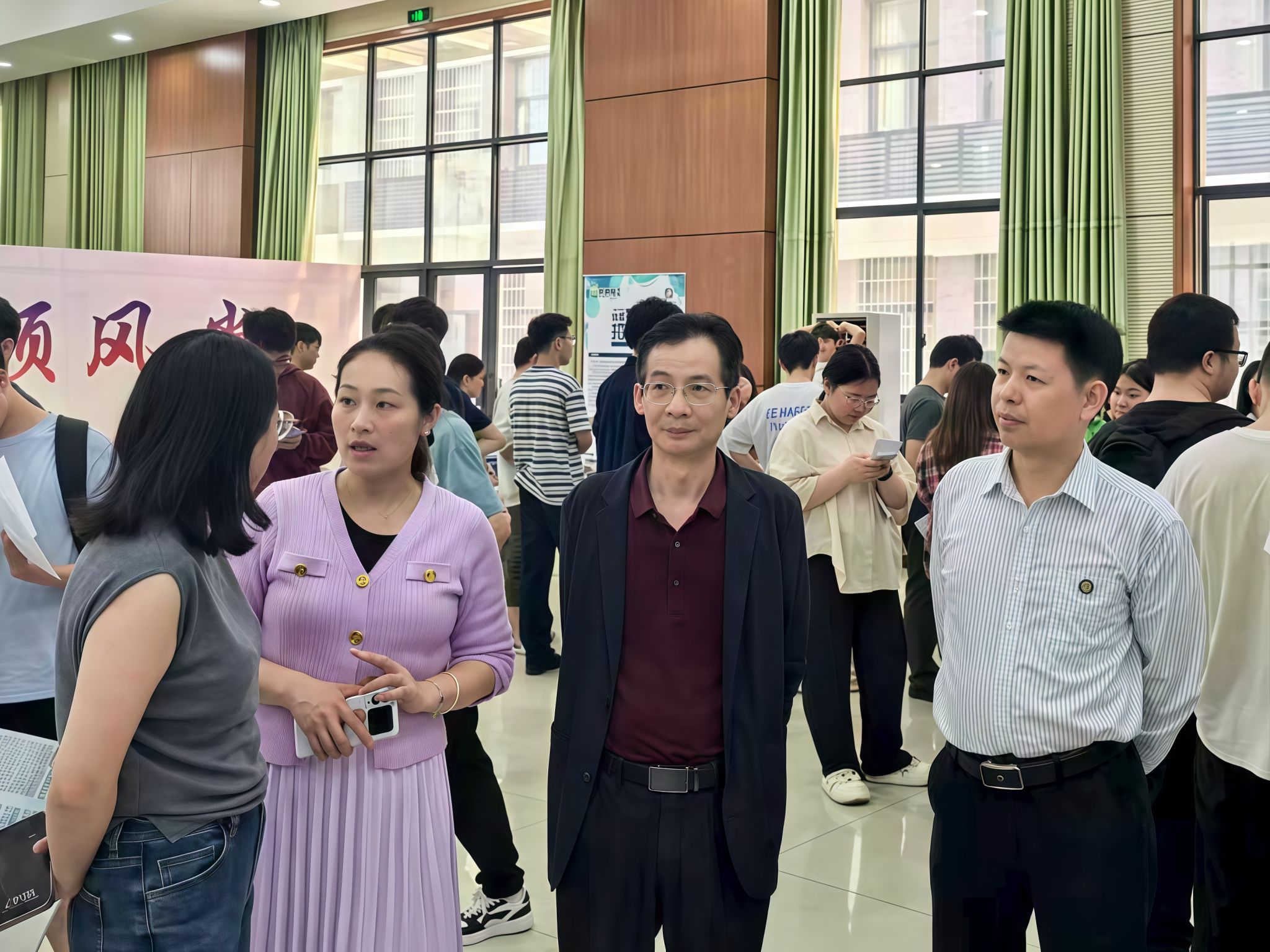学校、学院领导高度重视本次招聘会,学校党委副书记袁志成、副校长孙倩、学院党委书记熊创贤、院长曹国辉、党委副书记黄智及全体学工办老师亲临现场,他们与企业代表亲切交流,深入了解企业人才需求与行业发展趋势,就人才培养、实习就业、产学研合作等方面交换意见。同时,亲切询问学生求职情况,鼓励大家勇敢展现自我,把握就业机会。
