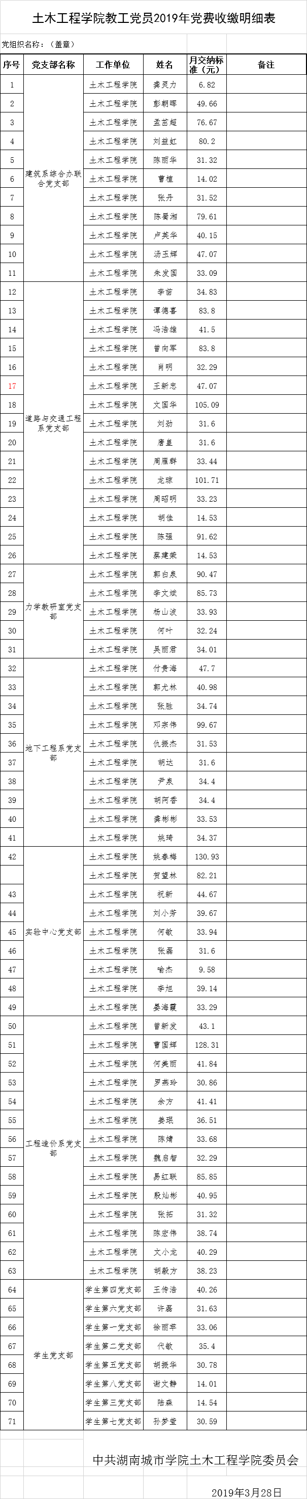 76net必赢线路检测中心教工党员2019年党费收缴明细表