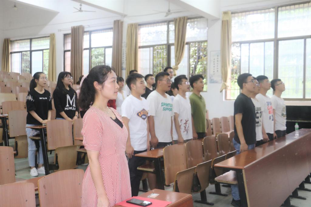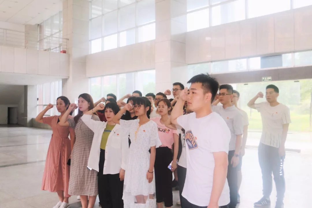 15:00,周梦婷宣布会议正式开始,全体起立,齐唱国歌。在毛泽东同志铜像前,学生党员梁鑫森带领全体党员面向党旗,庄严宣誓,对党忠诚,为共产主义奋斗终身。会上,同志们共同观看红色影片《初心,从未改变》,感受革命先辈的初心,回忆自己出发时的使命。毕业生党员代表李文杰结合自身经历,强调了初心对一名共产党员的重要性,并祝福同志们不忘初心,砥砺前行。肄业班的党员同志拍摄了视频《共筑城院梦》并在会上播放,表达了对毕业生党员的真切祝福。
