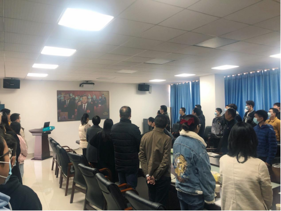 院党委组织全体院领导、党委委员、党支部书记和师生党员代表50多人,通过视频会议方式在土木楼722会议室集中收看现场直播。