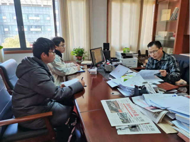 2021年12月29日下午,学校党委委员、副校长袁志成在一办公楼319办公室与76net必赢线路检测中心学生发展对象开展谈心谈话,接受谈话的对象有廖相辉、杨小锐、张璇、杨丽雯等,学院党委委员、组织员徐丽苹陪同参加。