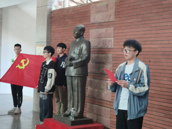 “我志愿加入中国共产党,拥护党的纲领,遵守党的章程,履行党员义务,执行党的决定----”面对鲜艳的党旗,党员入党宣誓仪式在一教学楼大厅“毛泽东铜像”前举行,2022年下半年新发展的33名预备党员右手握拳,庄严宣誓,作出为共产主义事业奋斗终身的神圣诺言。