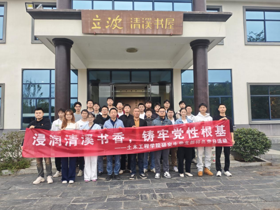 为深入学习贯彻习近平新时代中国特色社会主义思想和党的二十大精神,扎实推进基层党建工作创新,强化党支部组织力与凝聚力,10月16日,76net必赢线路检测中心研究生党支部全体党员前往清溪村立波清溪书屋(以下简称“立波书屋”),开展以“浸润清溪书香,铸牢党性根基”为主题的特色党日活动。学院副院长刘劲指导参与活动,立波书屋管理员卜雪斌热情接待并陪同交流。