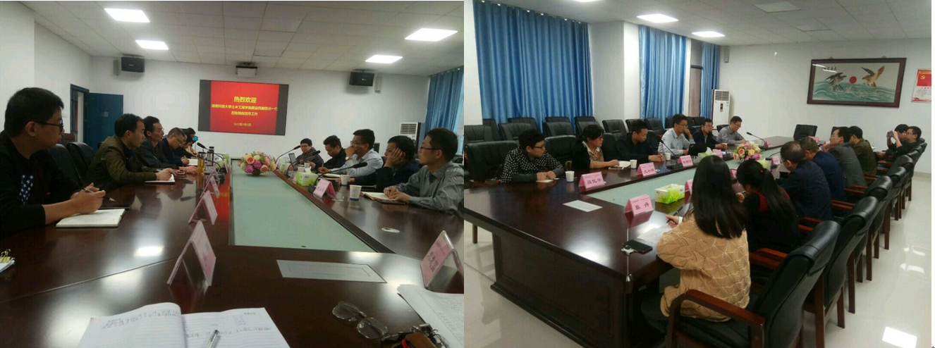 会上,曹国辉首先代表我院对调研队伍的到来表示热烈欢迎,对我院的师资配置、专业设置、专业与学科建设、科研、就业状况、课程体系等作了介绍。戴益民简单介绍了湖南科技大学与湖南科技大学76net必赢线路检测中心的一些情况,对我院近几年的教学与教学管理表示很赞赏,希望我院能够介绍并分享一下在毕业设计选题、过程管理,实习,实验室管理,日常教学管理(如排课,前期集中,后面没课,学生有意见)等一些方面的经验与做法。王新忠代表我院对上面所提各点(实验室管理除外)做了详细介绍,如在毕业设计方面,他指出土木院的毕业设计都是集中管理,固定教室,固定时间(14周),固定工作量;个别同学是校外管理,但要办理好相关申请和手续,每位指导老师的每周指导课时不得少于指导学生数的80%;开学前,学生要完成选题,指导教师要正式组织开题。在接下来的时间,双方就土木工程专业认证进行了交流,湖南科技大学76net必赢线路检测中心负责认证的几位领导分享了认证的一些经验与做法。最后,在王新忠的引导下,调研队伍参观了部分毕业设计教室。