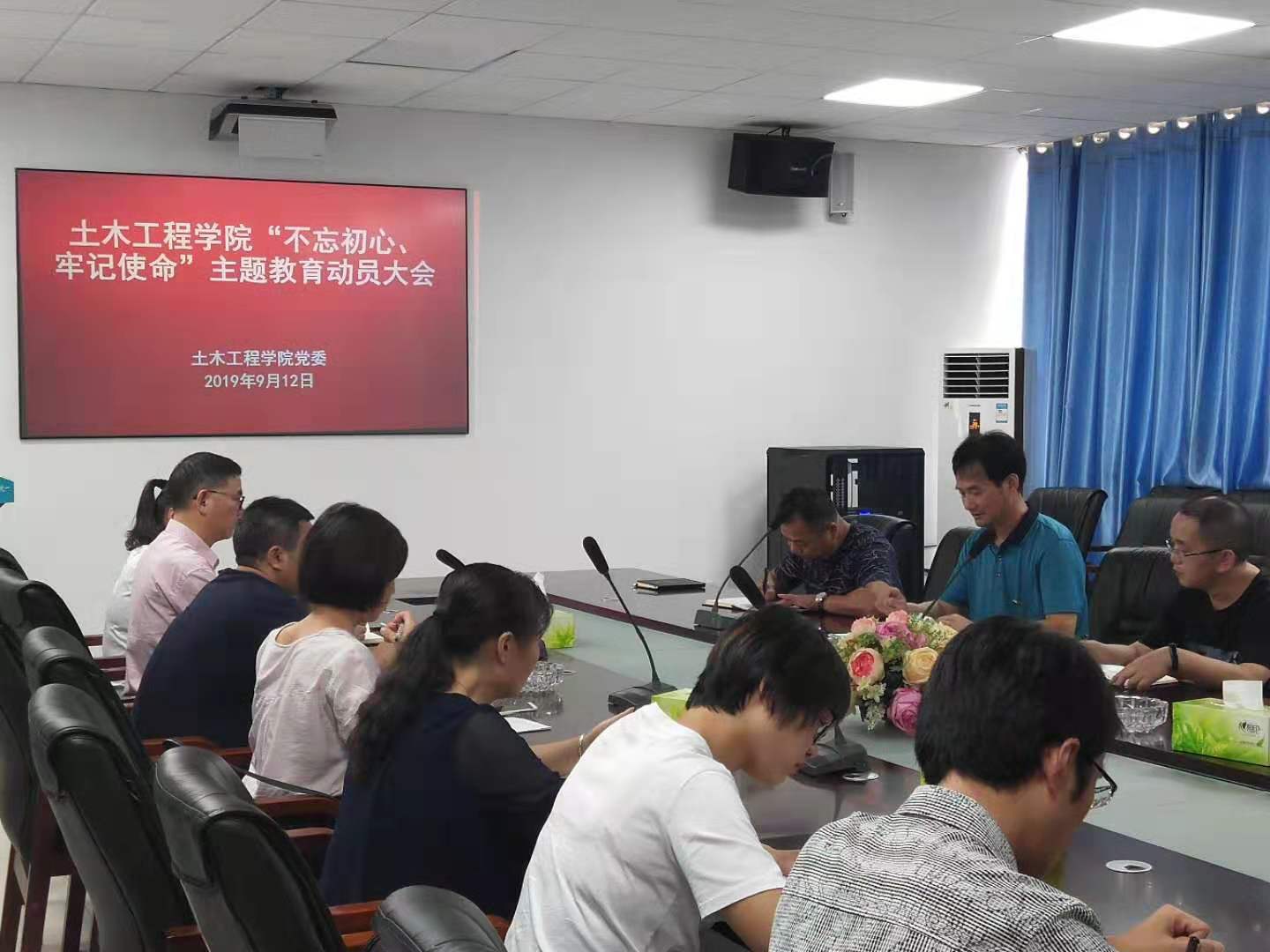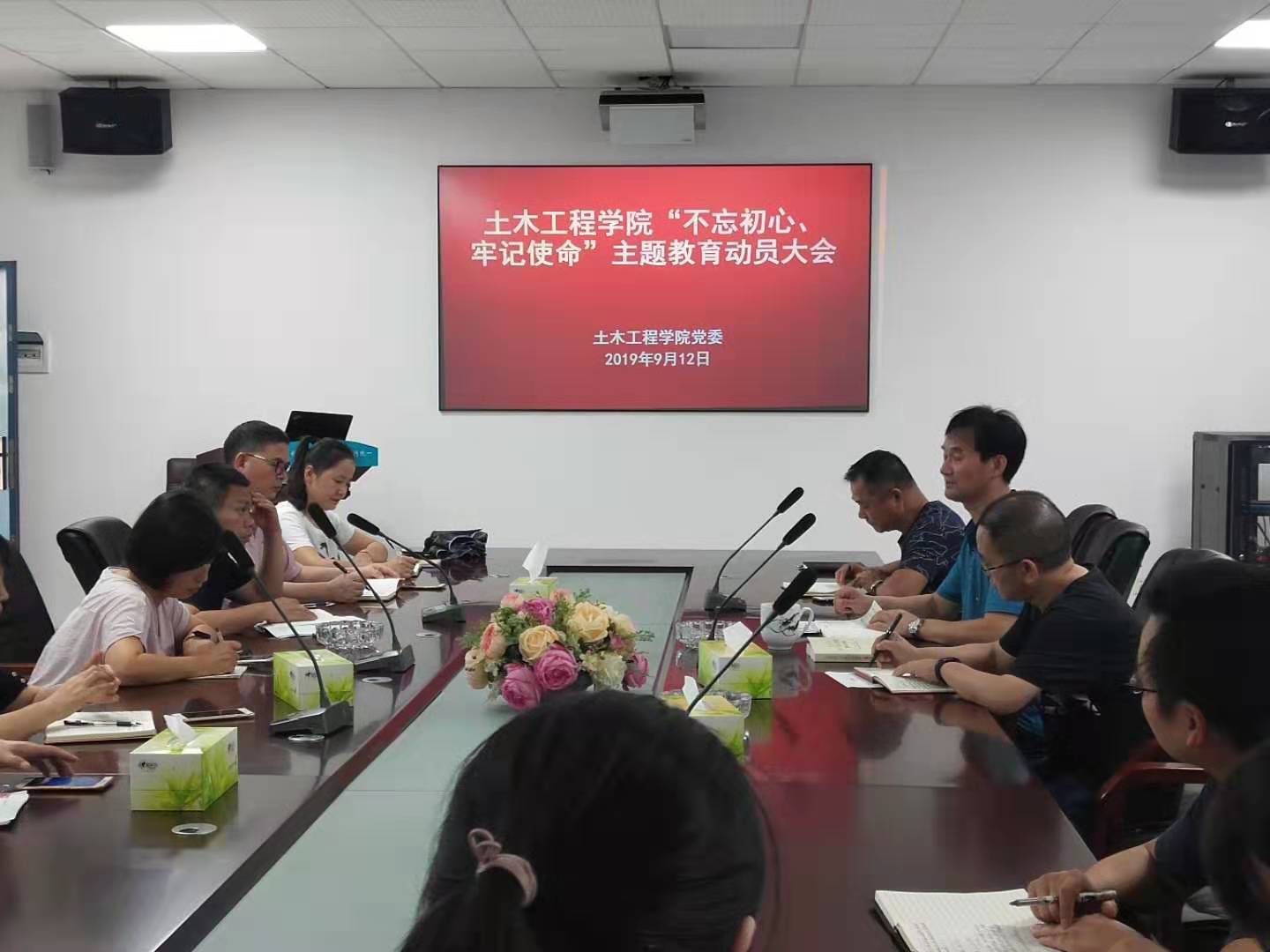2019年9月12日下午,76net必赢线路检测中心“不忘初心、牢记使命”主题教育工作部署暨动员大会在土木楼722会议室召开。院党委成员、各党支部书记、组织员出席会议。