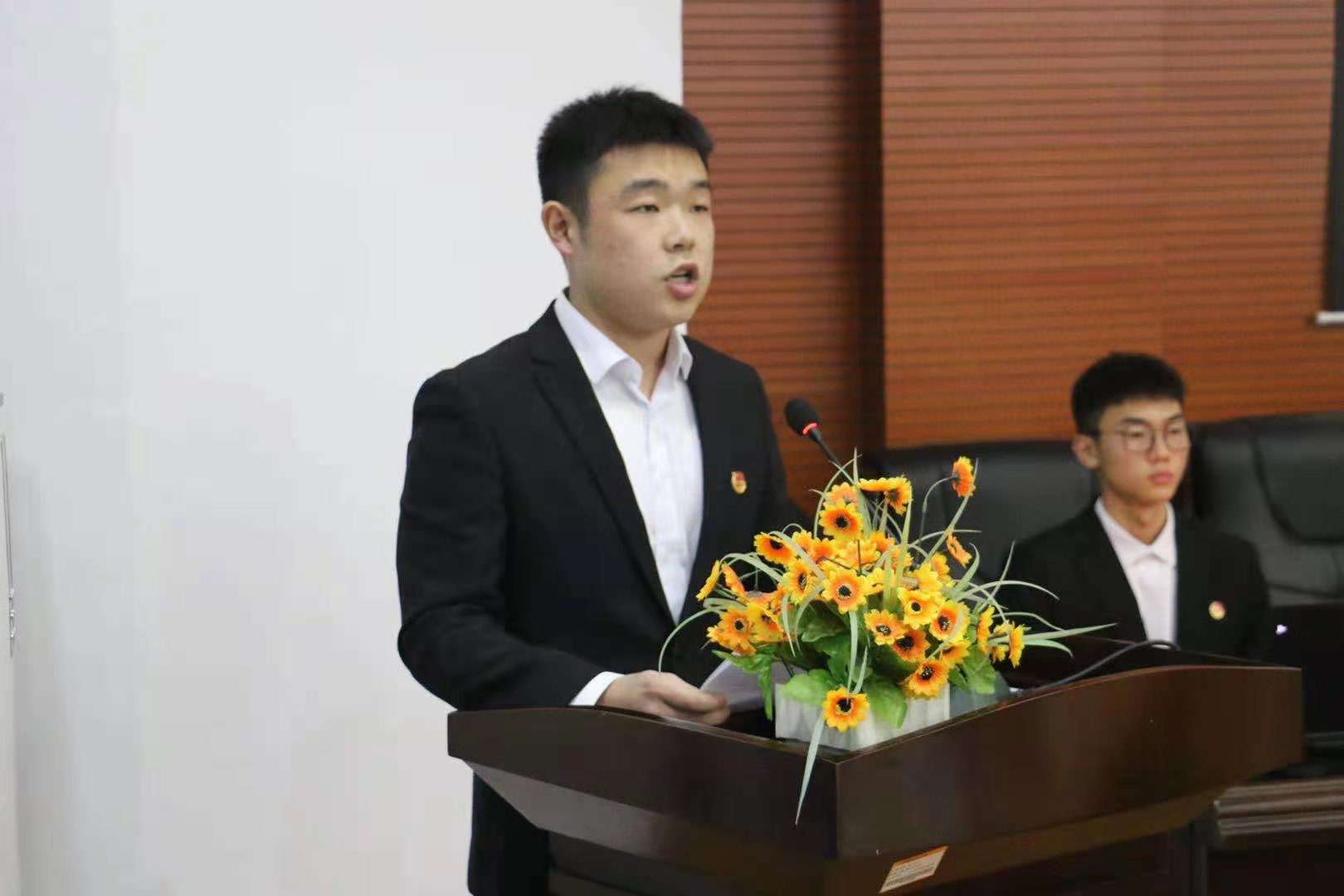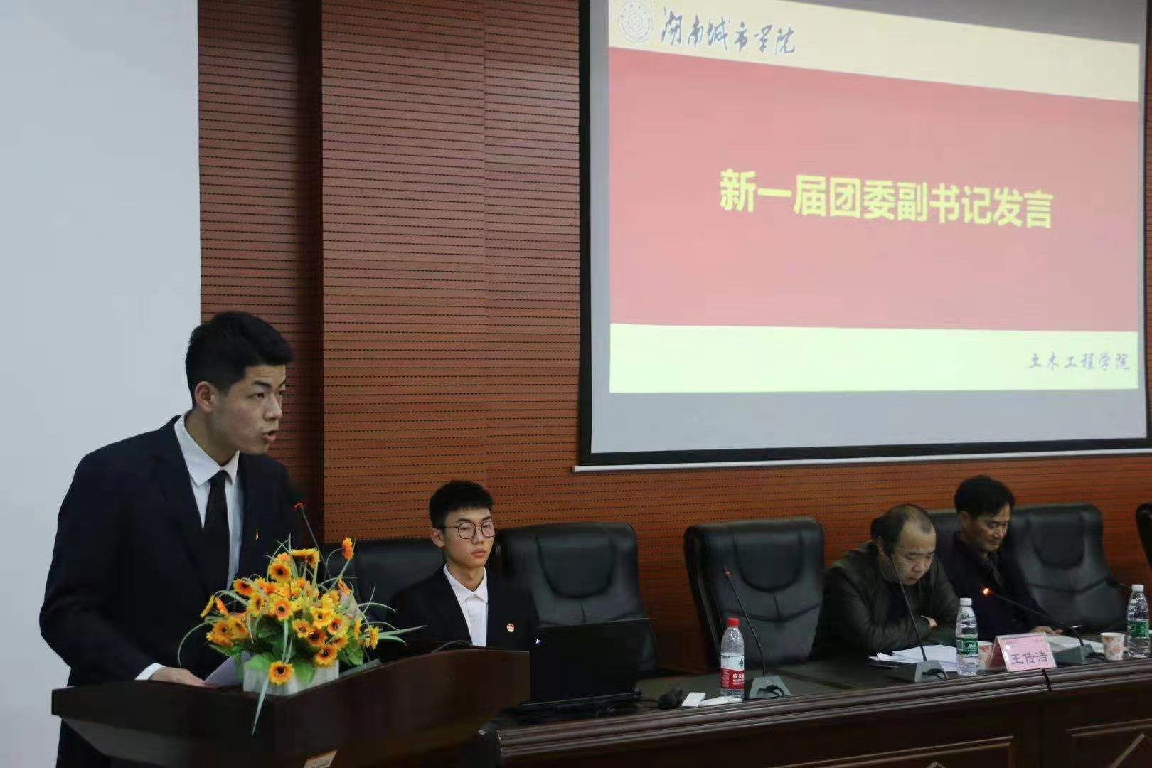 新当选的学生会主席宁杰琨宣读大会倡议书。号召全院团员青年胸怀理想,励志奋斗;勤学苦练,发奋成才;锤炼品德,传承薪火。用智慧和汗水谱写出不愧于历史,不愧于时代,不愧于青春的绚丽华章。