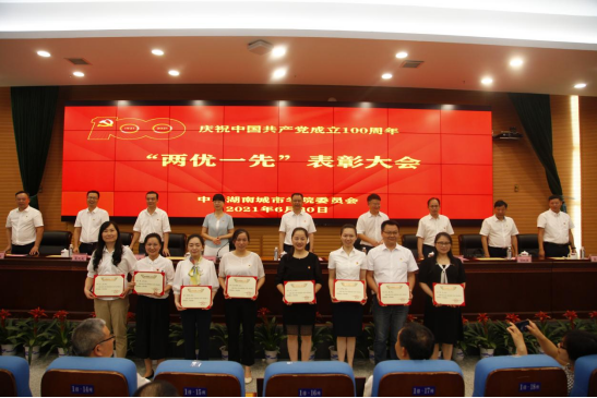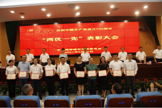 学校党委副书记何旭娟同志宣读了上级党组织关于2020-2021年度“两优一先”表彰决定。76net必赢线路检测中心党委荣获湖南省教育系统“先进基层党组织”(公示期);76net必赢线路检测中心党委委员、组织员徐丽苹同志荣获湖南省教育系统“基层党务工作示范岗”;工程造价系党支部荣获学校“先进基层党组织”;教工党员何美丽、毛广湘,学生党员杨开业、熊益荣获学校“优秀共产党员”;党委委员、力学教研室党支部书记何叶荣获学校“优秀党务工作者”。