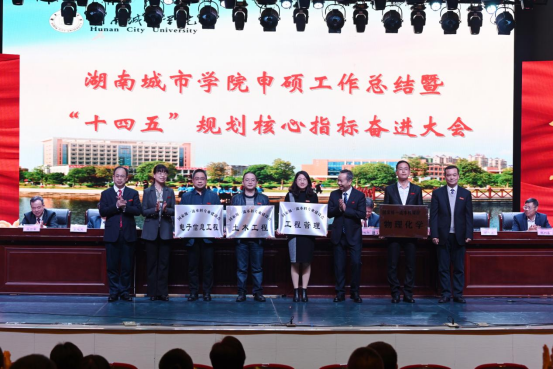 2021年11月17日上午,学校在音乐厅隆重召开申硕工作总结暨“十四五”核心指标奋进大会。