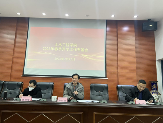 2023年2月12日下午,学院在土木楼828大会议室组织召开春季开学工作布置会并开展安全大检查和“开学第一课讲安全”活动,全体院领导、全院教职工参加。