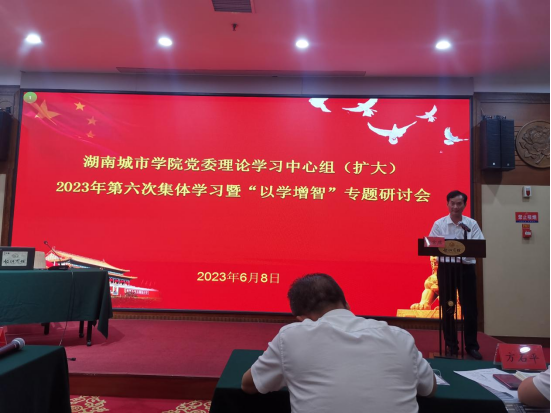 2023年6月8日,湖南城市学院党委理论学习中心组(扩大)2023年第六次集体学习暨“以学增智”专题研讨会在伟人故里----韶山举行。院党委书记郭白泉、党委副书记院长曹国辉、党委委员副院长孟新田以及全校正处级干部参加学习研讨。