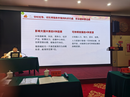 研讨会上,学校党委书记汤放华主讲了“学习习近平总书记关于教育重要论述精神,谱写新时代新征程湖南城市学院高质量发展新篇章”的主题党课,并组织领学了习近平考察陕西发表重要讲话精神。学校党委副书记、校长何振,党委委员、组织部部长吕贤军、党委宣传部常务副部长贺正宜先后领学了习近平总书记主持二十届中央政治局第五次集体学习并发表重要讲话精神、浙江浦江经验与“千万工程”、十二届省委理论学习中心组在岳麓书院开展集体学习沈晓明主持并作总结讲话精神等。