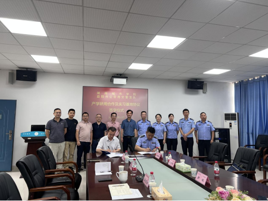 2023年6月12日上午,学院在土木楼722会议室举行“湖南城市学院、益阳市交警支队产学研暨实习基地合作签约仪式”。湖南城市学院党委委员、副校长雷存喜,益阳市交警支队党委副书记徐超群出席,益阳市交警支队相关部门负责人、76net必赢线路检测中心全体院领导、交通工程系教师代表等参加签约仪式。