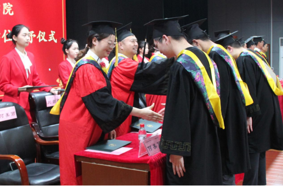 之后,全体院领导和学位委员会成员逐一为1064名毕业生拨穗并授予学士学位证书。