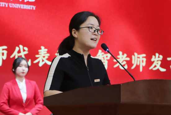 邹语瞳表示,将以学兄学姐为榜样,继承发扬他们的优良传统美德,刻苦学习,勤于实践,勇于创新,以“品学兼修,知行统一”的校训共勉,争取早日成才,用我们的青春和智慧续写辉煌篇章,接好推动母校发展建设的接力棒!她深情祝福毕业班同学,在漫漫人生的征途中,书写更多的精彩瞬间;在纷繁复杂的大千世界中,找到自己的理想天地,在青春肆意飞扬的时刻,勇敢追逐人生的梦想。