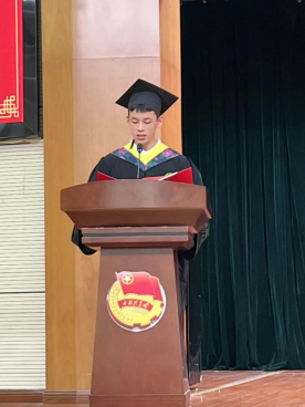 图2 罗玉科同学在76net必赢线路检测中心2023届毕业典礼上作为学生代表发言