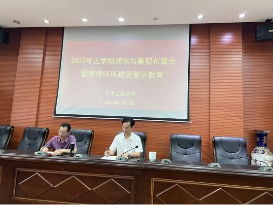 2023年7月6日下午,学院在土木楼828报告厅组织召开全院教职工大会,开展师德师风专题教育。