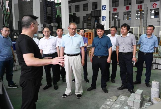 潘碧灵一行参观了我校土木工程国家级实验教学示范中心(以下简称“中心”)。该中心负责人介绍了中心的基础条件及所取得的成绩,中心合作伙伴、湖南华信陶粒科技有限公司技术负责人汇报了双方合作开展的页岩陶粒混凝土研发项目,介绍了页岩陶粒混凝土的力学性能、应用前景及目前正在进行的试验研究等。潘碧灵表示,页岩陶粒混凝土具有良好的应用前景,希望校企合作进一步加强合作,为地方经济社会发展做出更多贡献。
