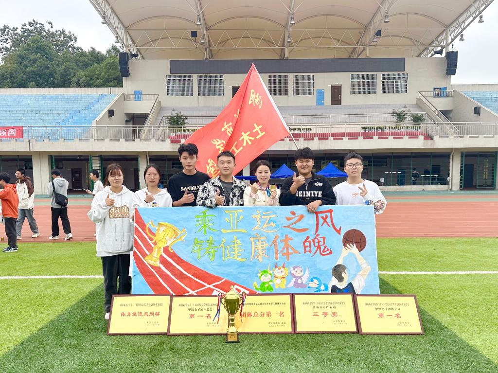 经过3天紧张激烈的拼搏,由64名学生运动员组成的学生代表队和22名教师组成的教职工代表队,荣获学生男女团体总分第一、甲组男子团体总分第一、女子团体总分第一和教职工团体总分第一的优异成绩,学院同时获评体育道德风尚奖、开幕式方阵表演三等奖等,实现所有团体总成绩第一的“大满贯”,用实力再次捍卫了76net必赢线路检测中心在学校校运会上的“霸主”地位!