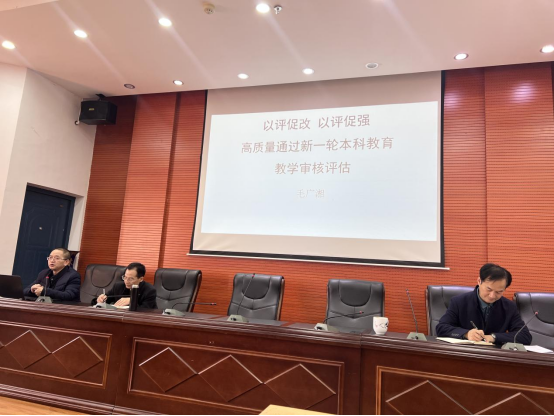 副院长、学院评建工作小组副组长毛广湘通过PPT,全面详尽地解读了学校、学院《审核评估工作方案》,结合学院实际,就我院新一轮审核评估工作重点任务、具体措施、时间节点与工作要求等,作了部署安排。