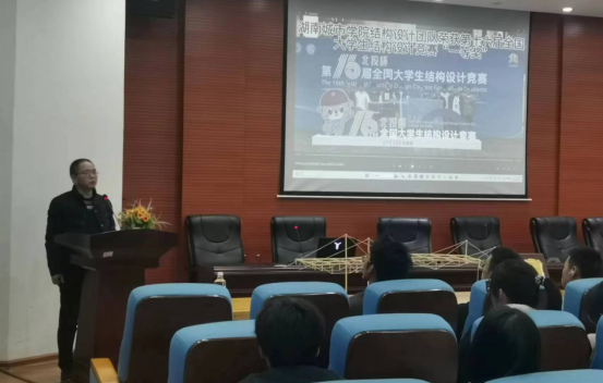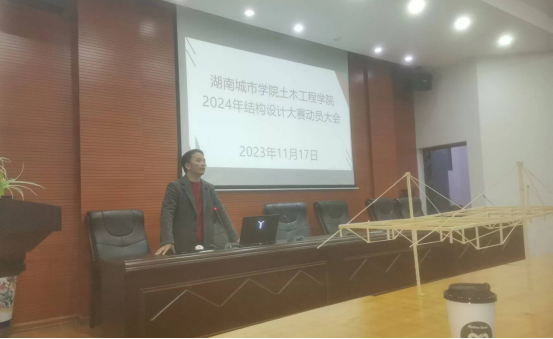 2023年11月17日晚,学院在土木楼828会议室组织召开湖南城市学院结构设计竞赛动员会,副院长毛广湘、指导老师洪新民出席,来自全校相关专业的学生参加动员会。