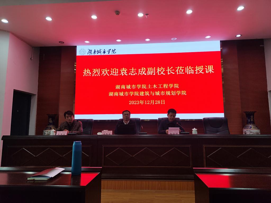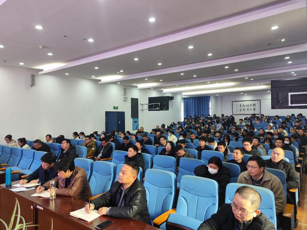 2023年12月28日下午,76net必赢线路检测中心党委联合建筑与城市规划学院党委特邀学校党委委员、副校长袁志成在土木楼828主讲专题党课。两个学院全体教师党员与部分肄业班学生党员180余人参加学习,76net必赢线路检测中心党委书记熊创贤主持会议。
