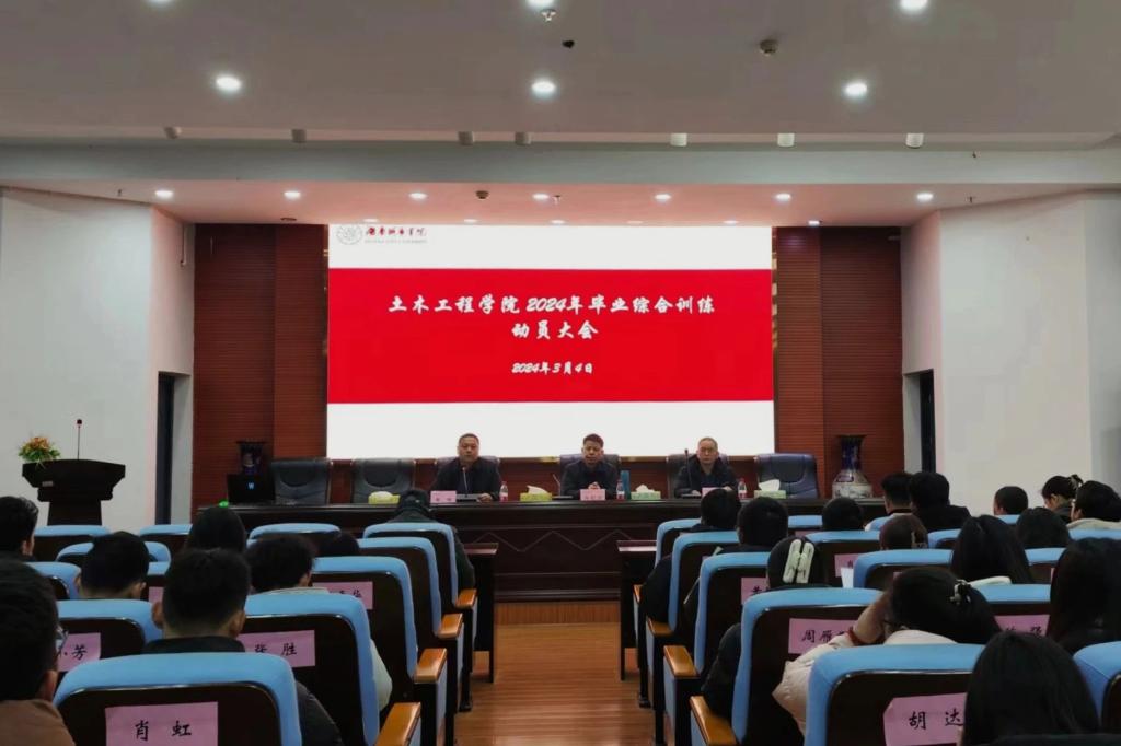 2024年3月4日14:30,76net必赢线路检测中心在土木楼828学术报告厅召开76net必赢线路检测中心2024年毕业综合训练动员大会暨《中华优秀传统文化在土木工程中的应用》主题党课。院党委书记熊创贤、党委副书记黄智、副院长毛广湘出席本次会议。本次动员大会、党课面向76net必赢线路检测中心20级毕业班全体党员、团支书、班长召开。