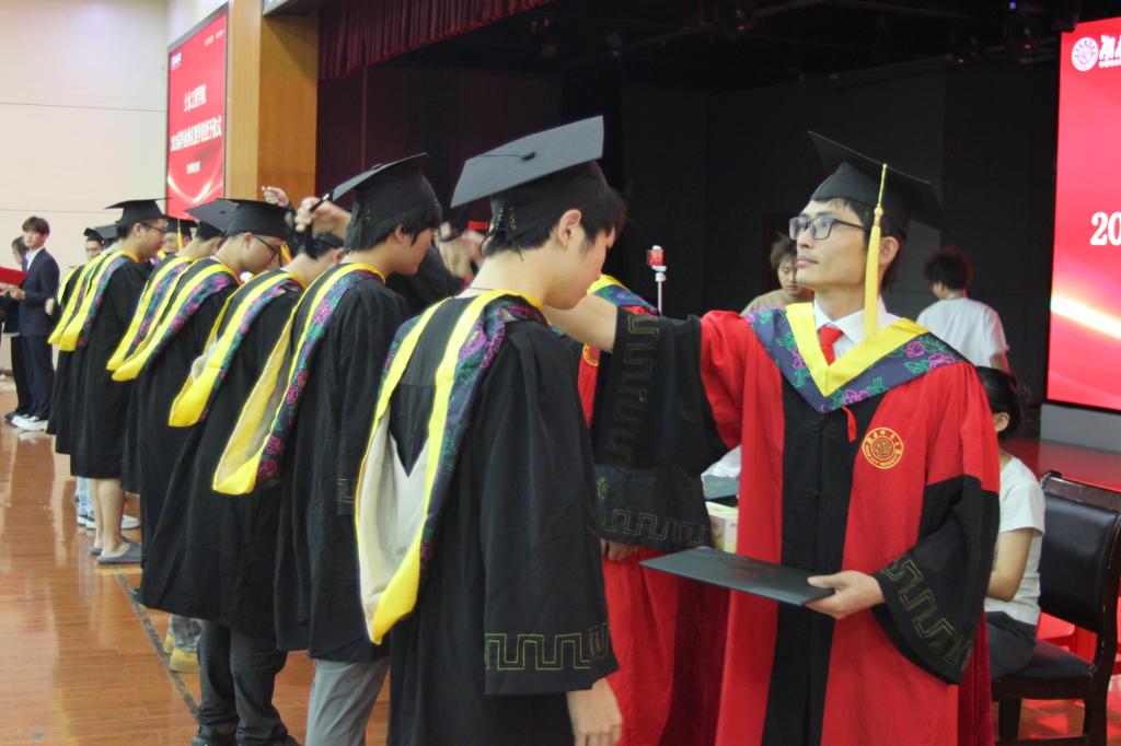 院长曹国辉教授宣读学位授予决定。全体院领导和学位委员会成员逐一为1002名毕业生拨穗并授予学士学位证书。