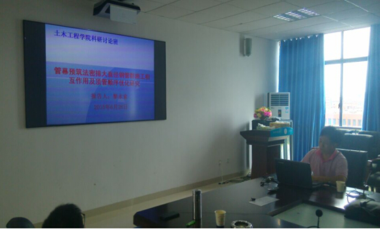 6月26日下午三点,76net必赢线路检测中心科研讨论班在土木楼722组织了一次科研研讨会,参加研讨会的有副院长邓宗伟、蒋建清博士、毛广湘博士、黎永索博士、付贵海博士等。黎博士报告的主题为《管幕预筑法密排大直径的管群施工相互作用及顶管顺序优化研究》。