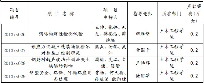 2013年度湖南城市学院大学生科技创新项目土木院立项名单