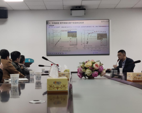 倪教授凭借深厚的学术底蕴、广阔的学术眼界以及严密的学术思辨,对正断层作用下埋地球墨铸铁管的研究进行了全面阐述,包括研究的背景和意义、土体自由场响应规律、管道响应规律以及管道破坏模式。倪教授的研究为相关领域的理论拓展和实际应用提供了多维度的思考,深入浅出的讲座有助于在场师生深入理解该情境下的复杂工程问题,同时还介绍了光纤材料的选型及其应变规律,提出了能表征土体沉降曲线和计算峰值土体应变的理论分析方法。会议的最后,倪教授对于球墨铸铁管的创新点进行了总结与展望。