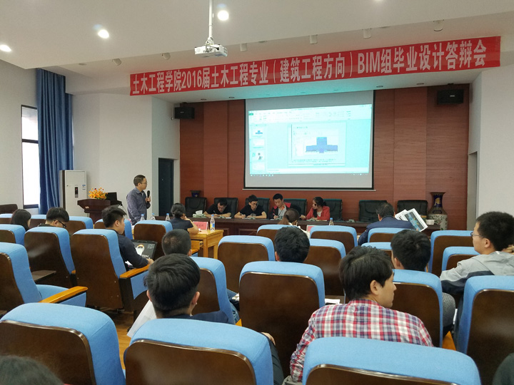 2016年6月3日上午8点30分,76net必赢线路检测中心2016届建筑工程专业BIM组毕业设计答辩会在土木楼828室展开。出席本次答辩的老师有:毛广湘教授、刘益虹教授、何美丽教授、张再华教授。