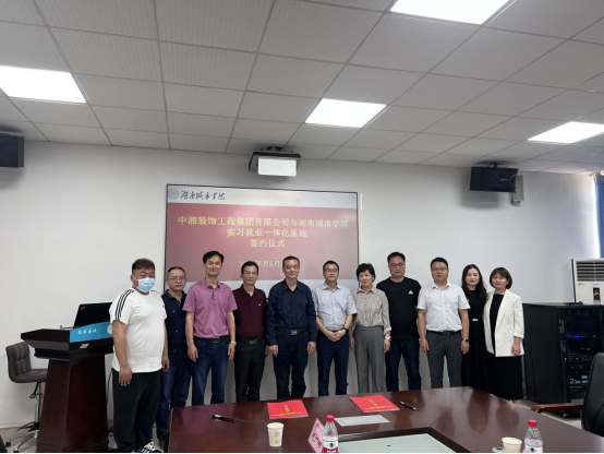 2023年5月17日上午,湖南城市学院、中湘装饰工程集团有限公司共建实习就业一体化基地协议签订仪式在76net必赢线路检测中心土木楼722会议室隆重举行。