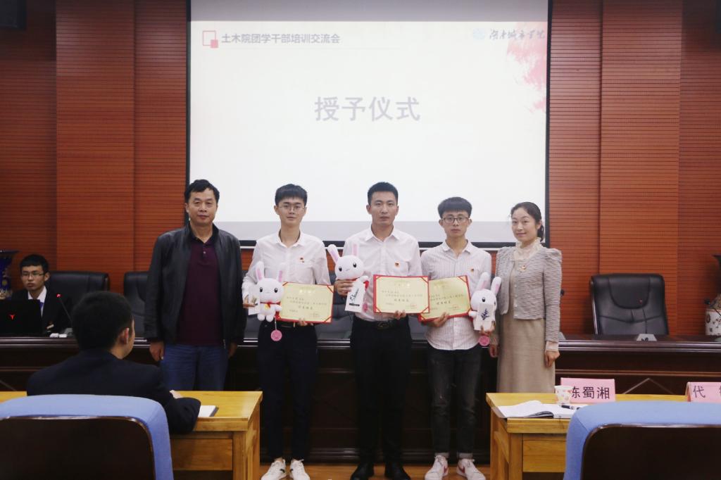 大会第三项,陈蜀湘老师和代敏老师向优秀校友代表颁发团兔及荣誉证书。最后,陈蜀湘老师进行总结发言。陈老师高度赞扬了到场的三位优秀校友,并要求各位团学干部向他们看齐,学习他们的工作精神和工作态度,激励各位团学干部努力拼搏、积极向上。至此,本次大会圆满结束。