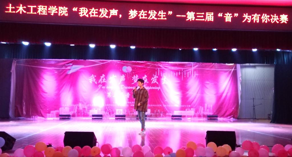 (土木院通讯员 徐湘嫔)4月26日19:20,76net必赢线路检测中心于新食堂学生活动中心举办了“我在发声,梦在发生”第三届“音”为有你决赛。出席本次比赛的嘉宾有76net必赢线路检测中心党委副书记贺望林、王传浩,团委书记代敏,学工办主任许磊,17届团委副书记刘俊、学生会主席张钱鸿,18届团委副书记张欣、胡硕瑜,学生会主席李志冬,副主席徐子锌、邹杨波,学生党务工作办公室主任李文杰、副主任刘扬、副主任莫晗,党员培训部副部长袁赞、党员管理部副部长刘玉婷,大学生心理健康协会前会长赵宇航,第一学生党支部副书记窦晶,第二学生党支部副书记周梦婷,第六学生党支部副书记戴莹。