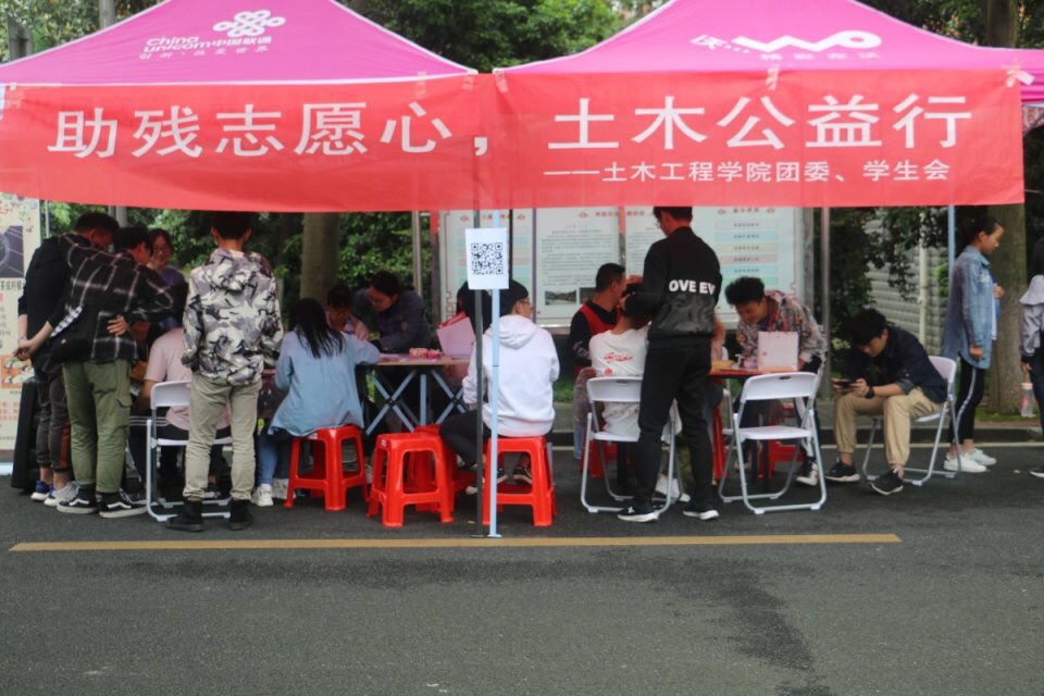 (土木院通讯员 朱泽芝) 为践行社会主义核心价值观,大力弘扬人道主义思想,4月20日10:00,76net必赢线路检测中心团委、学生会于龙城大道开展了“助残志愿心,土木公益行”摆台活动。
