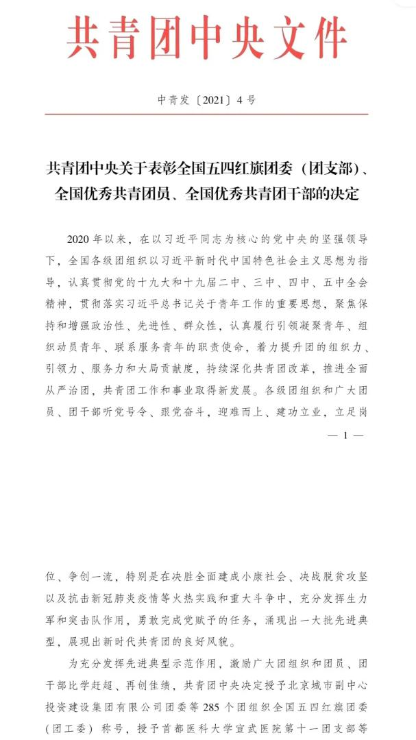 此次表彰是对我院在团的建设工作中锐意进取、开拓创新不断取得优异成绩的充分肯定。我院也将继续发扬五四精神,认真履行引领凝聚青年、组织动员青年、联系服务青年的职责,开创我院共青团事业发展的新篇章,希望我院青年团员只争朝夕、不负韶华,为祖国发展建设贡献青春力量。