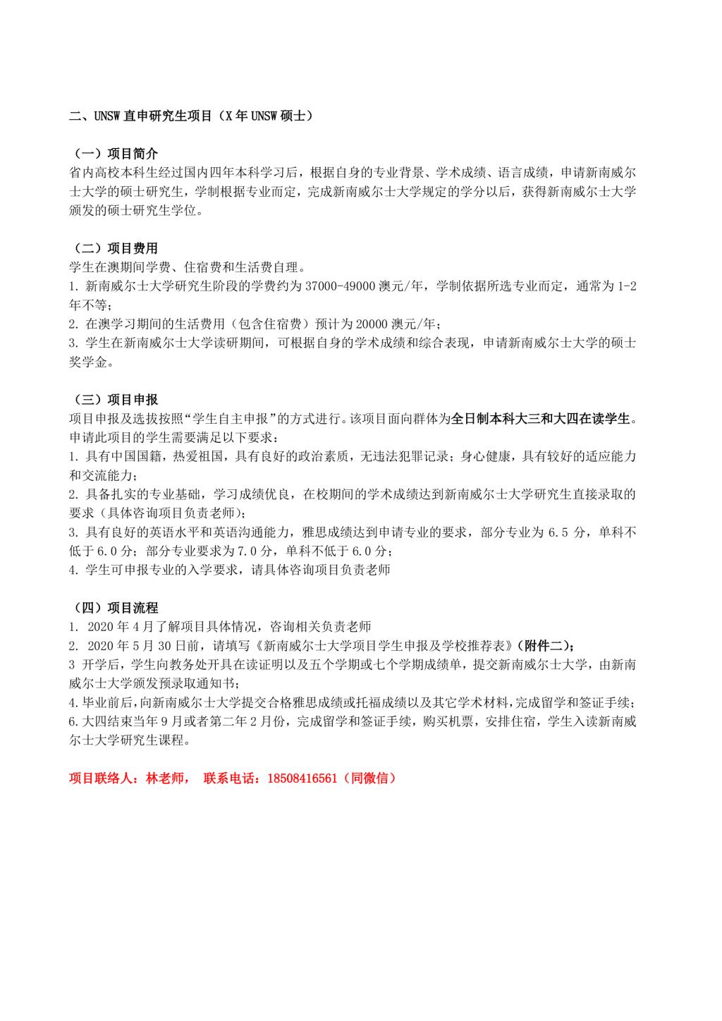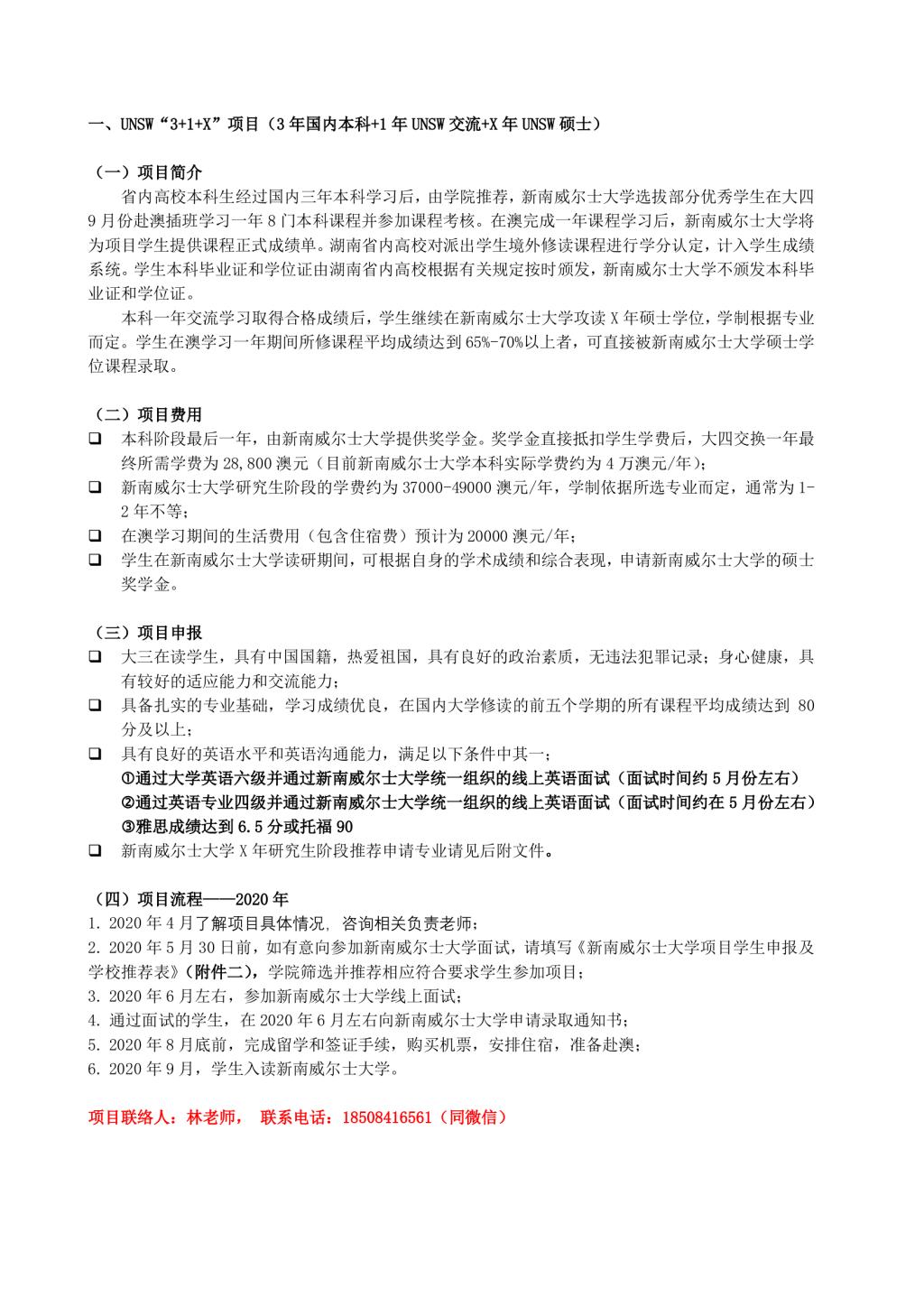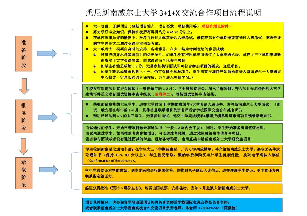 悉尼新南威尔士大学3+1+X交流合作项目流程说明
